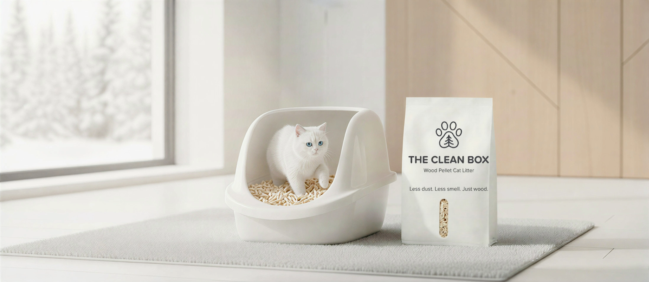 Add a layer of wood pellets to the litter box, around 4–5 cm deep. Spread evenly, just as you would with any standard litter.